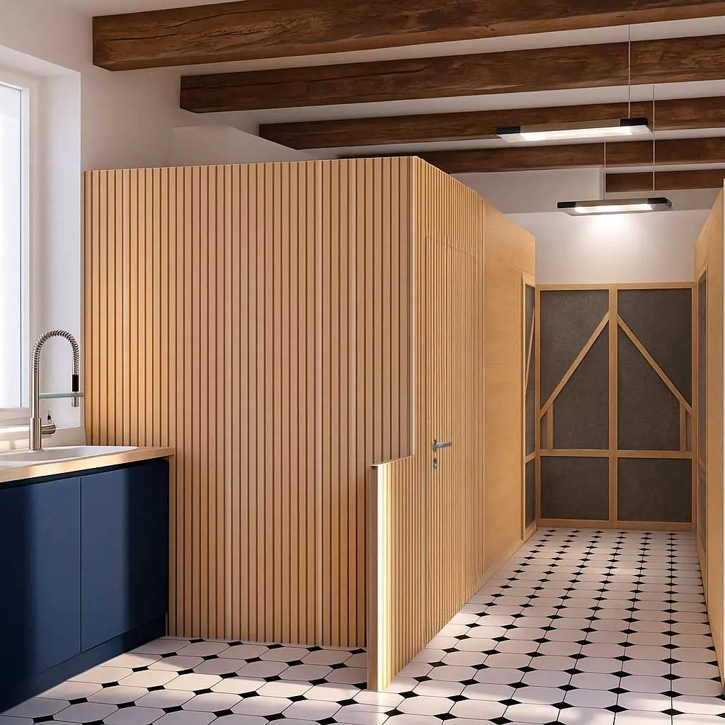 Lorsque les espaces privés et collectifs sont équilibrés, que l’acoustique est bien maîtrisée et que les matériaux sont agréables, la qualité de vie au travail s’améliore naturellement. On se sent plus à l’aise pour échanger, se poser, réfléchir ou recevoir.