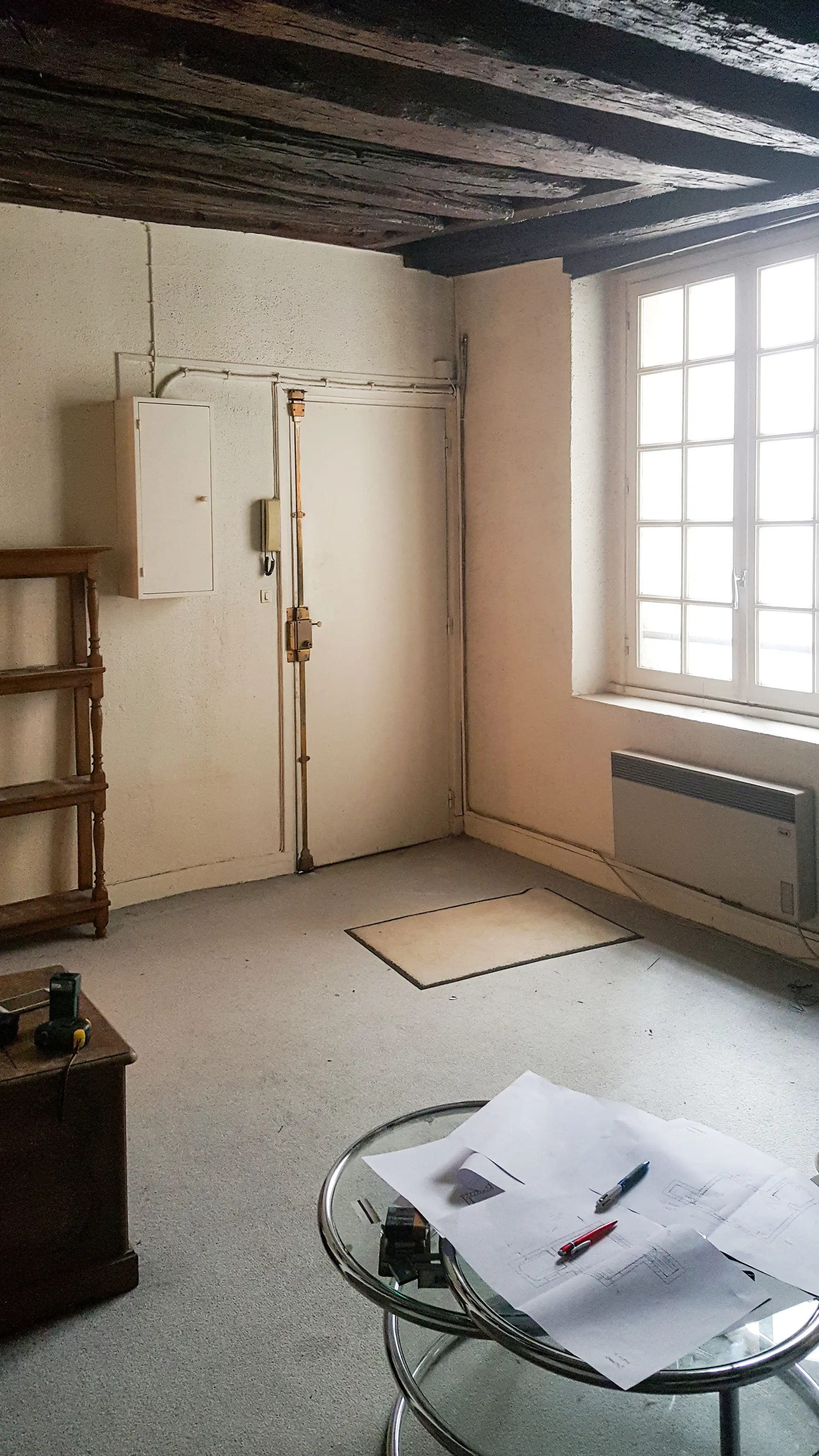 Dans cet immeuble datant du 17e siècle, en plein coeur du Paris historique, nous voulions redonner tout son charme à cet appartement défraichi, maximiser sa luminosité aujourd'hui très faible et optimiser les espaces mal exploités.