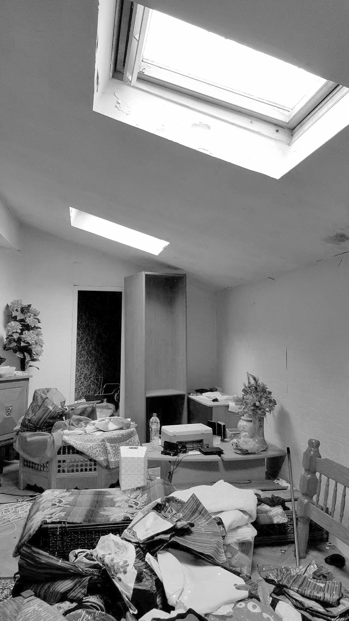 Cet appartement du centre de Bordeaux, presque insalubre lorsque le nouveau propriétaire l'a acheté, cachait bien tout son potentiel. Placé au dernier étage, il était assez bas de plafond et éclairé principalement par des velux engloutis dans des puits de lumière très profonds, la plupart des rampants ayant été recouverts d'un faux-plafond droit.