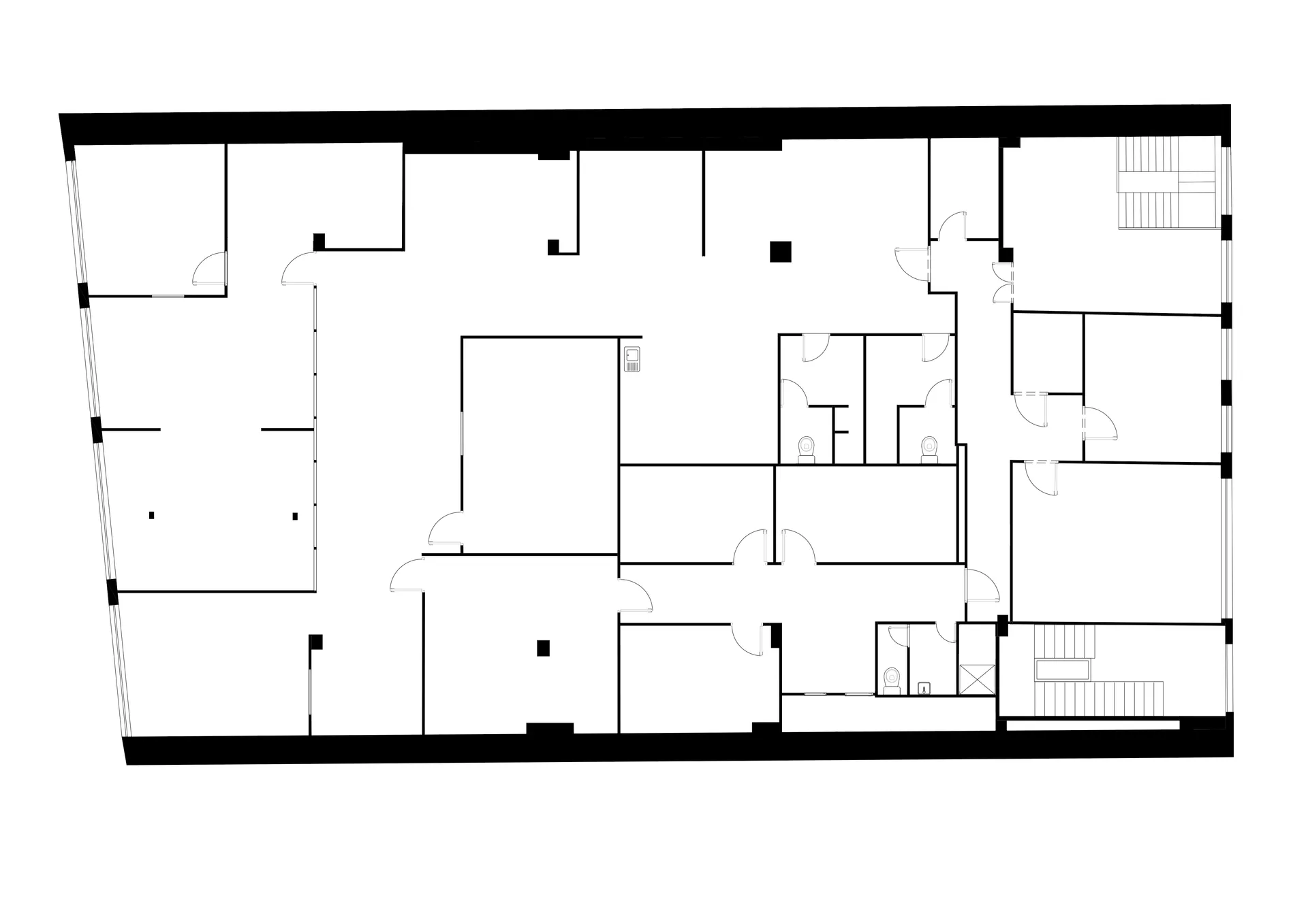 Le plan existant révélait un nombre important de pièces, la plupart n'ayant aucune source de lumière naturelle. Cette configuration était totalement inadaptée à un espace de coworking moderne et à l'esprit de collaboration recherché par Snark Factory, l'entreprise à l'initiative du projet.