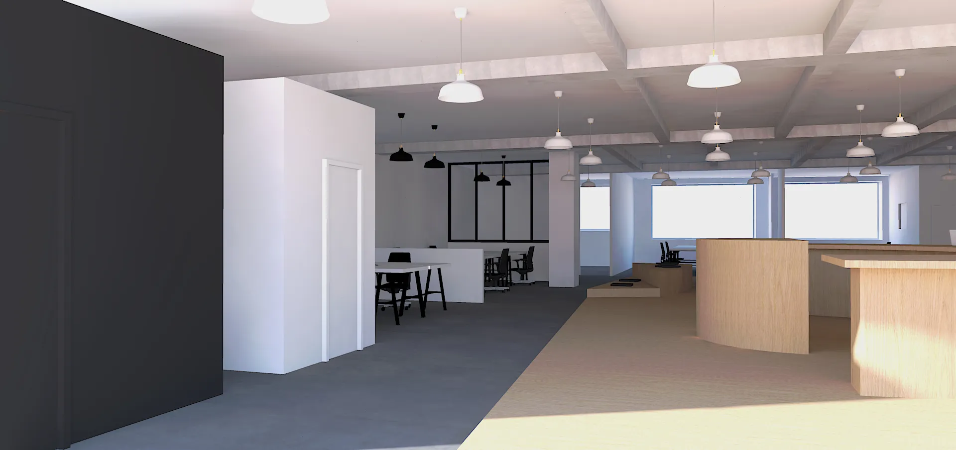 Ce projet d'aménagement de bureaux professionnels de 550m² démontre comment une réflexion approfondie sur les usages et les circulations peut transformer un espace contraint et sombre en un lieu de travail lumineux et collaboratif. Un espace de coworking qui devient un véritable catalyseur de synergies entre les entreprises accueillies, où l'architecture intérieure devient un outil au service de l'innovation et de la collaboration.