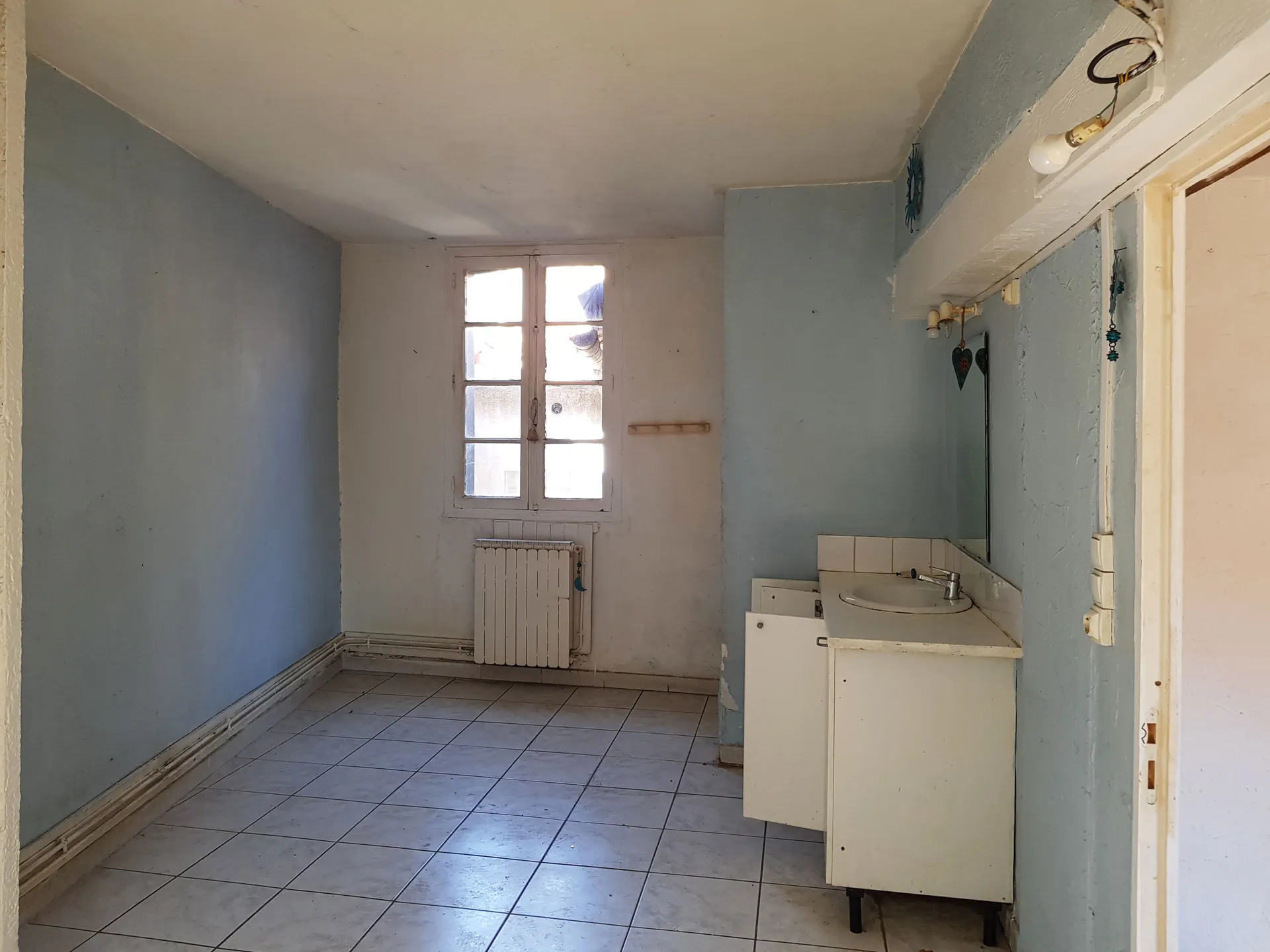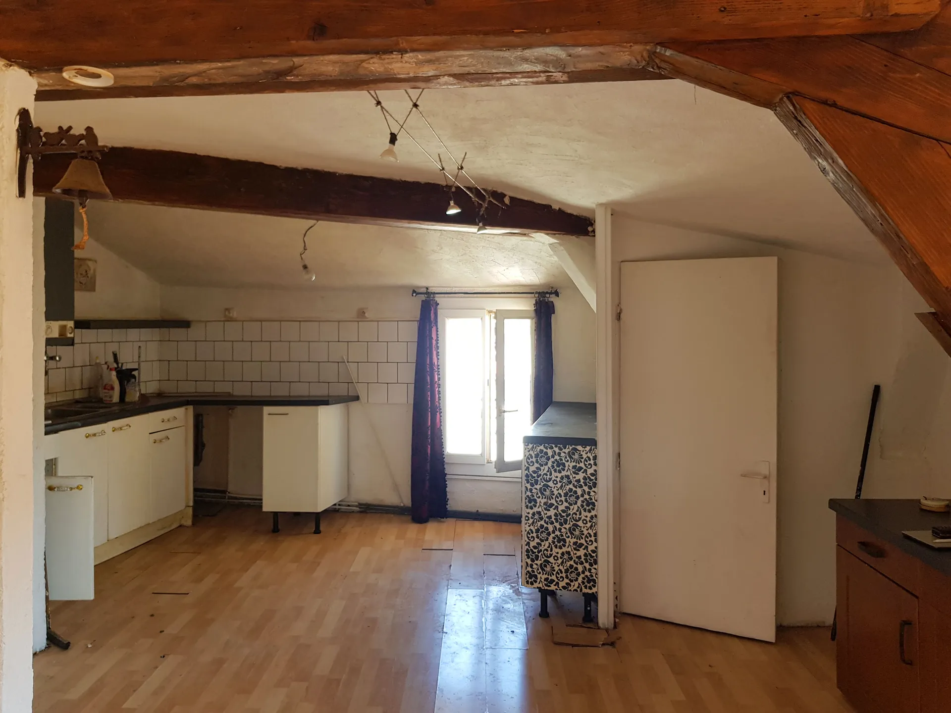 Lorsque mon client m'a contacté pour ce projet de rénovation, l'appartement qu'il venait d'acquérir au dernier étage présentait tous les défis typiques d'un logement sous combles mal entretenu. L'espace était sombre, dans un état insalubre, avec une douche improvisée dans un angle. La configuration initiale se limitait à deux volumes : une pièce à vivre à l'entrée, puis une chambre avec un coin salle d'eau sommaire.