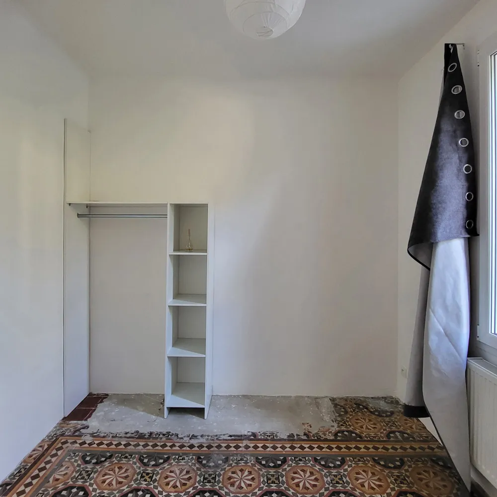 Nous avons donc fait machine arrière et laissé cette pièce telle quelle, en installant simplement un grand dressing secondaire pour les affaires de la maisonnée, un petit coin bureau dans le prolongement et un canapé-lit. La part belle est laissée aux carreaux de ciment d'origine, qui font vraiment le charme de cette pièce.