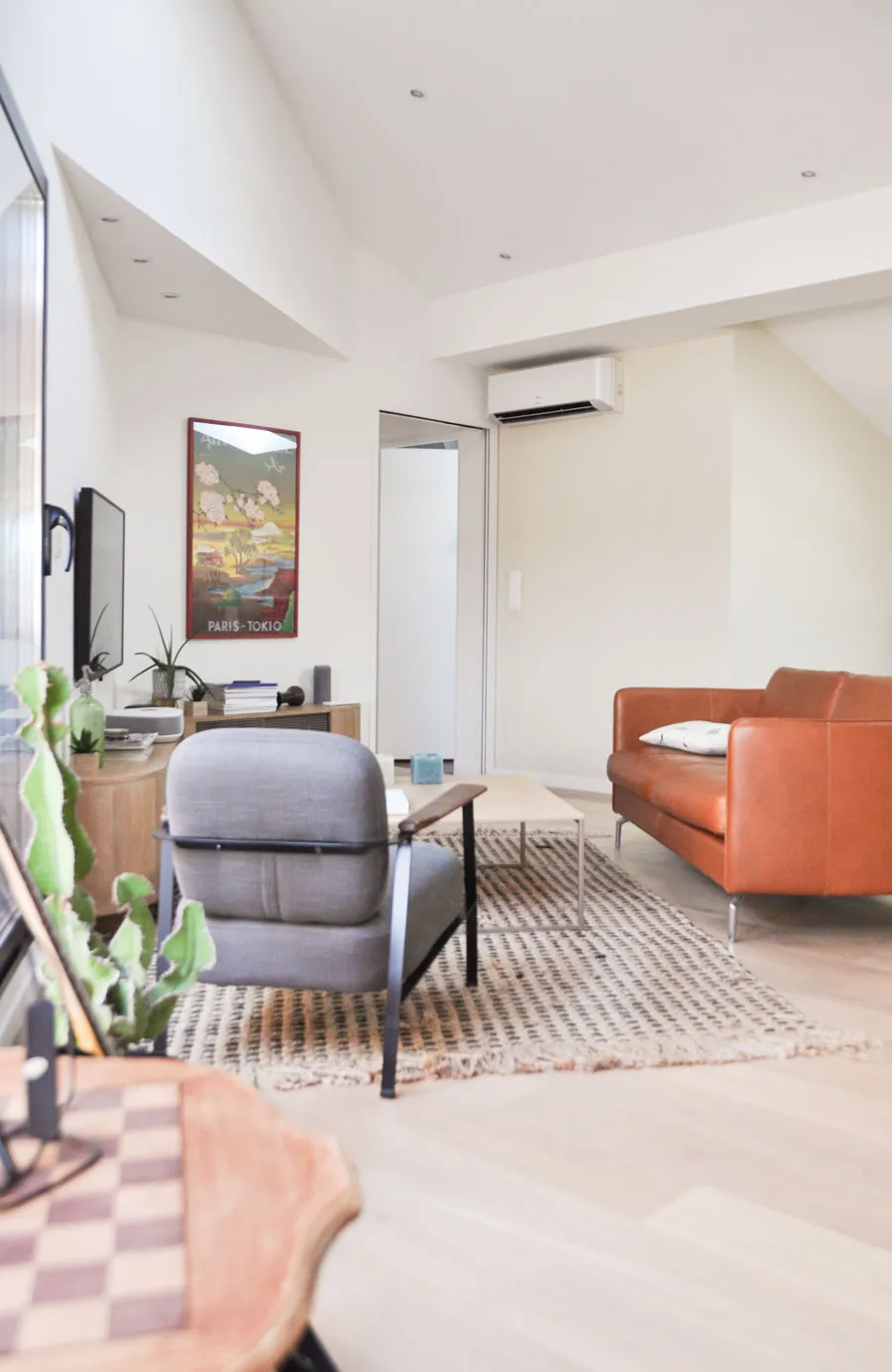 La part belle est donnée à la pièce à vivre, donnant sur la nouvelle terrasse qui lui apporte beaucoup de lumière naturelle. La chambre parentale en bénéficie également, positionnée de manière à profiter de cette luminosité traversante. Une deuxième chambre est créée, complétant ainsi le programme de cet appartement familial.