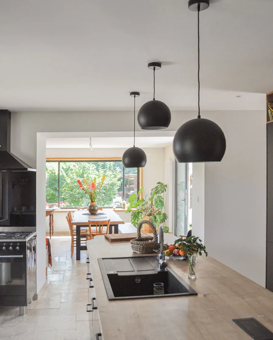 Cette belle bâtisse en pierre, dans la famille depuis de nombreuses années, avait besoin d'être modernisée, notamment la cuisine. Les propriétaires souhaitaient également l'agrandir pour ajouter une petite chambre et une salle d'eau à l'étage, et créer une grande pièce de vie ouverte au rez-de-chaussée.