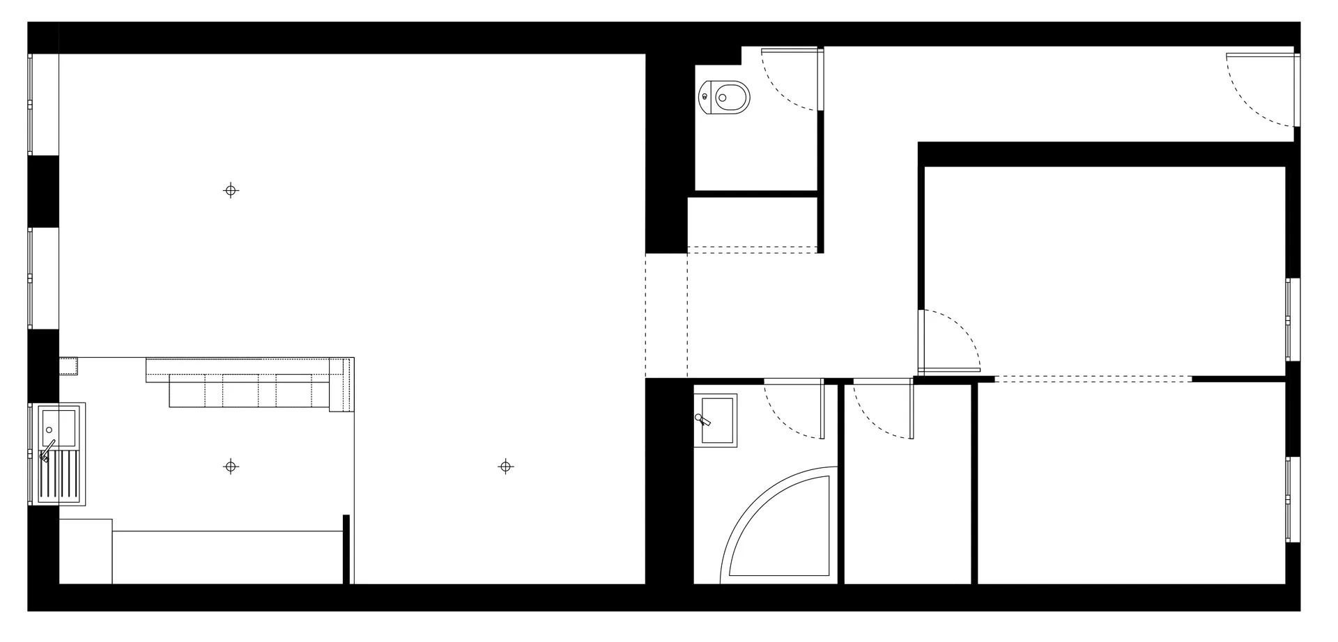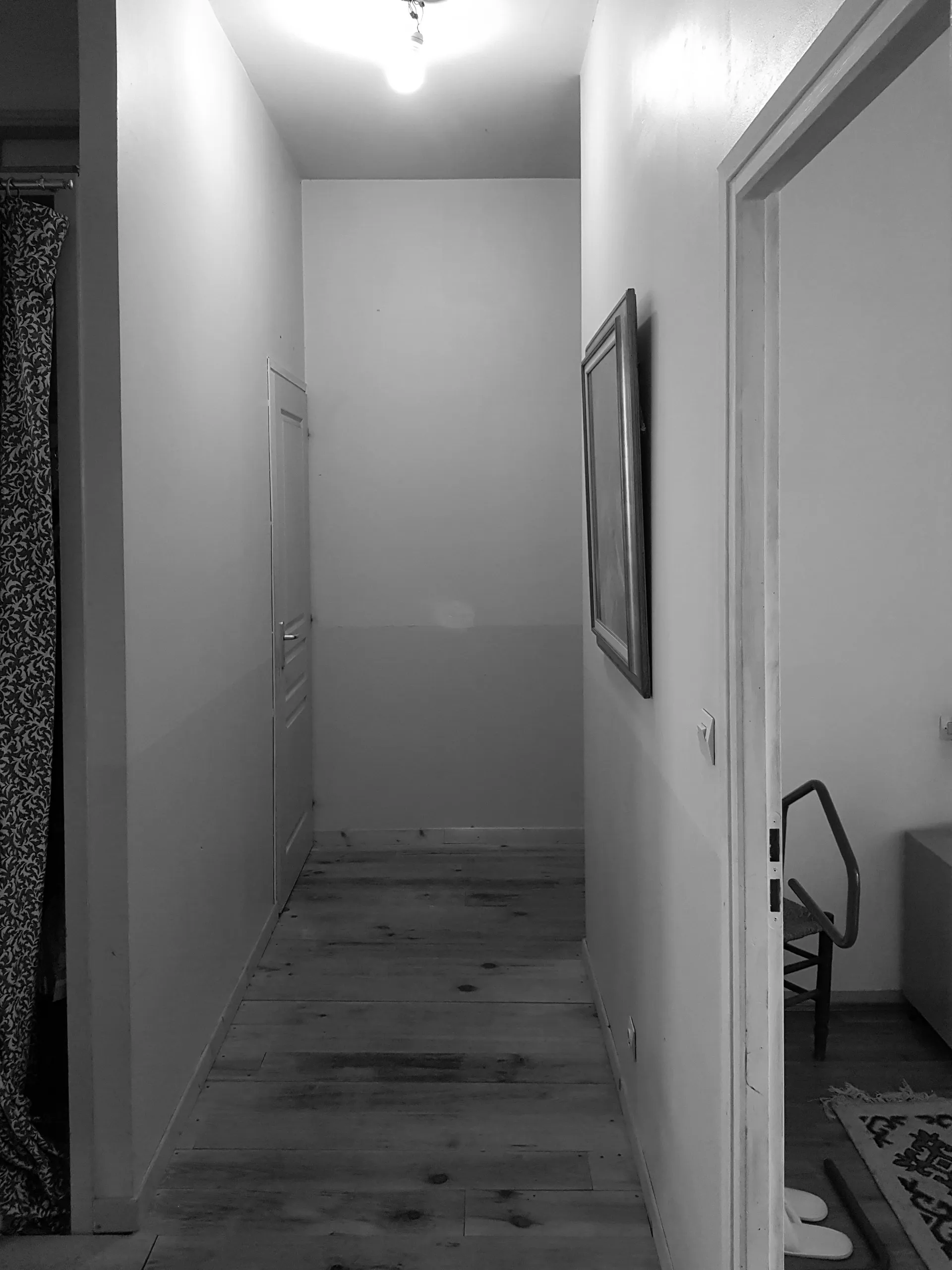 Les anciens propriétaires n'ayant plus besoin que d'une seule chambre, et la deuxième étant très petite, la cloison les séparant avait été abattue. Le propriétaire n'avait pas non plus besoin de deux chambres, mais voulait quand même pouvoir accueillir ponctuellement des amis et de la famille sans avoir de contrainte à la revente.